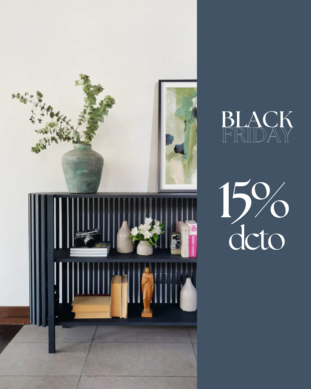 Estructura completa en madera de Pino natural con acabado negro y poliuretano satinado.