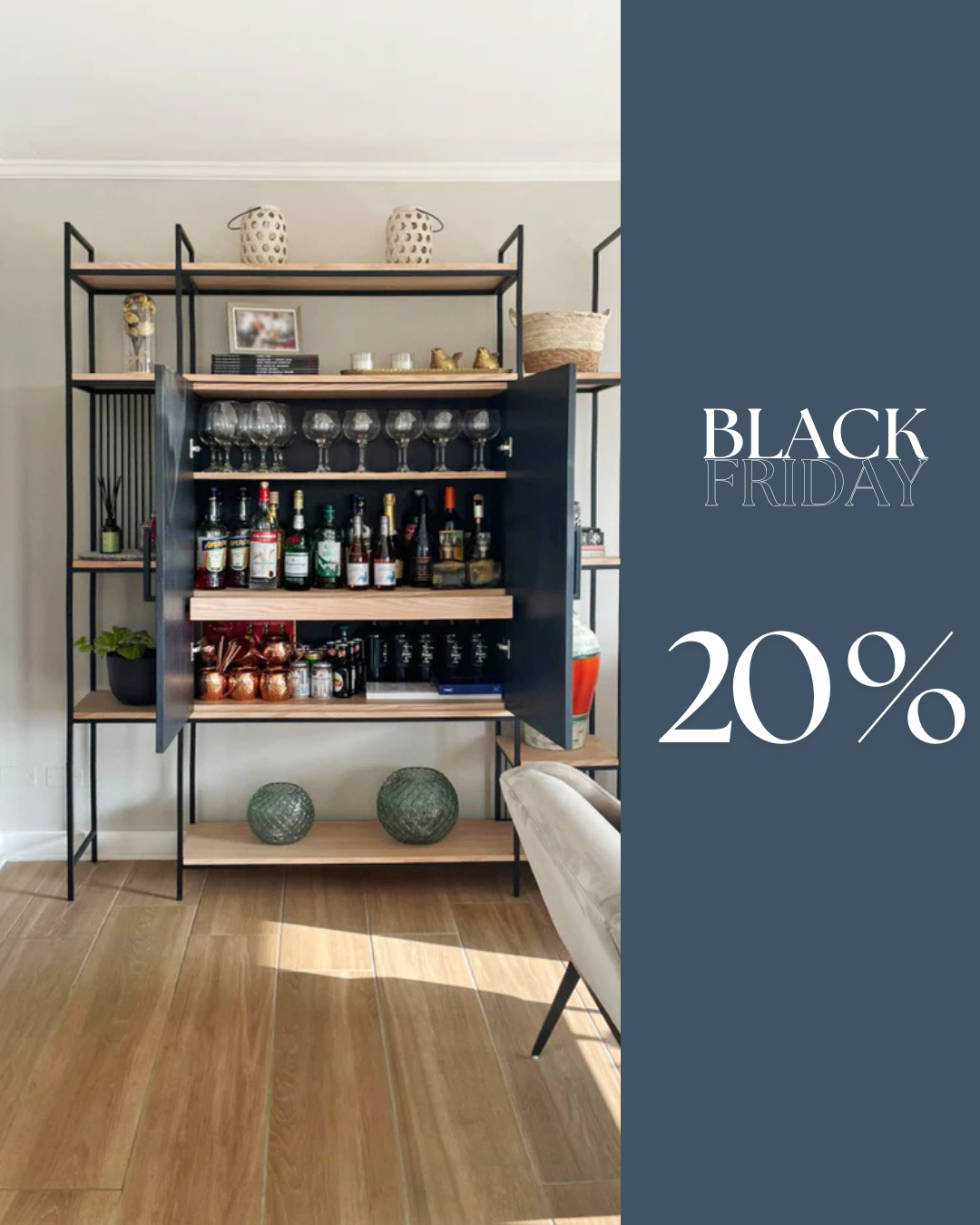 Repisas y puertas en placa enchapada en Encina natural con acabado de poliuretano satinado. 18mm de espesor.
