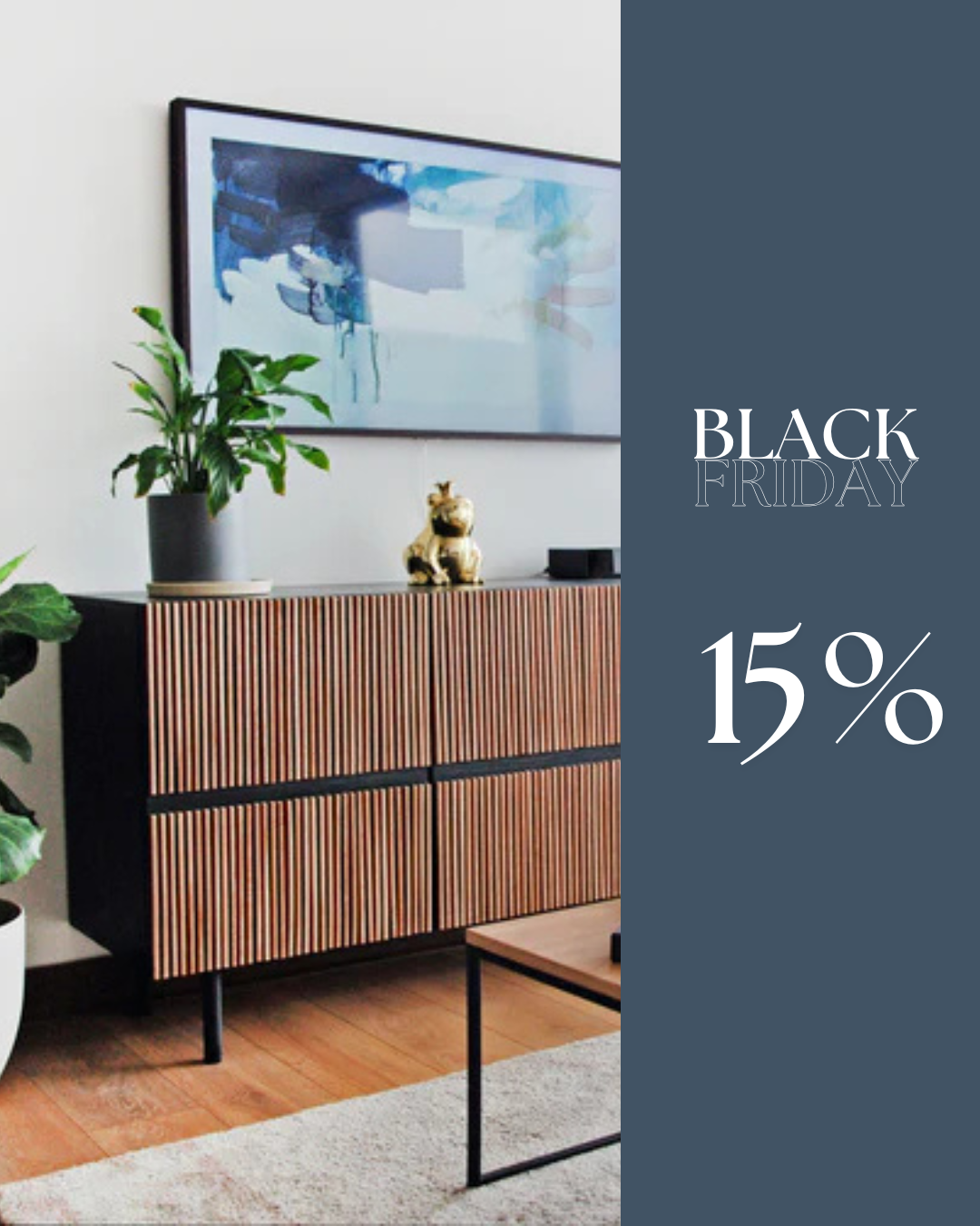 Estructura en placa enchapada en madera natural de Encina, terminación pintura negro acabado satinado.