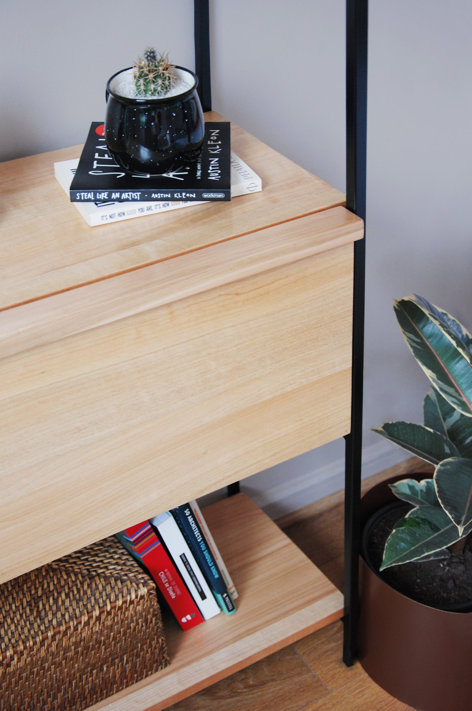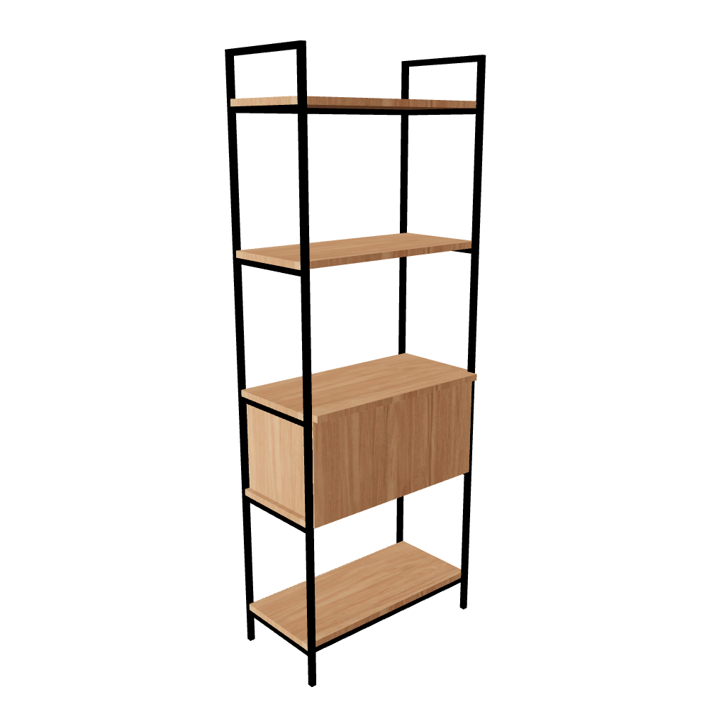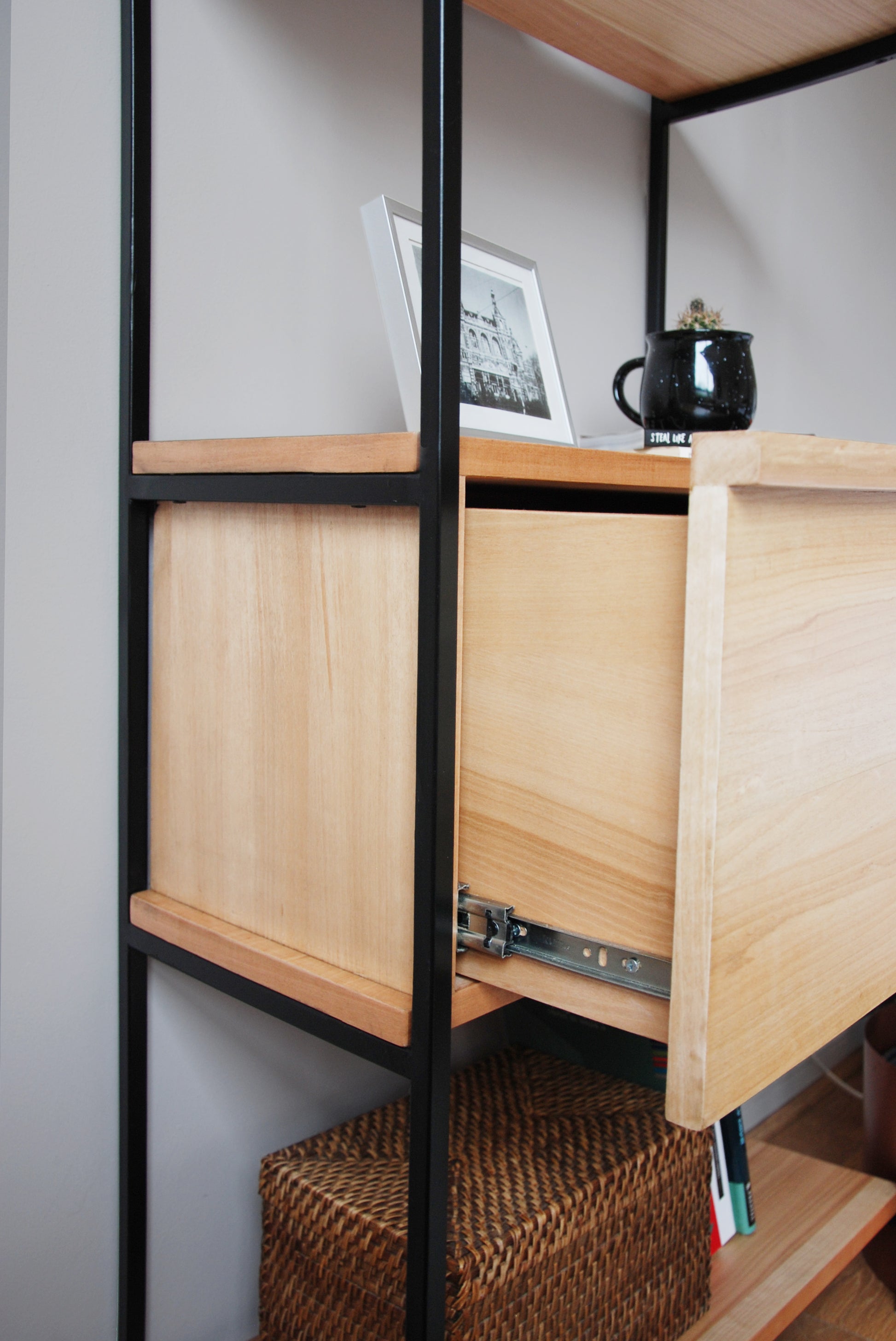 Repisas y cajón en placa enchapada en Encina natural con acabado PU satinado.
