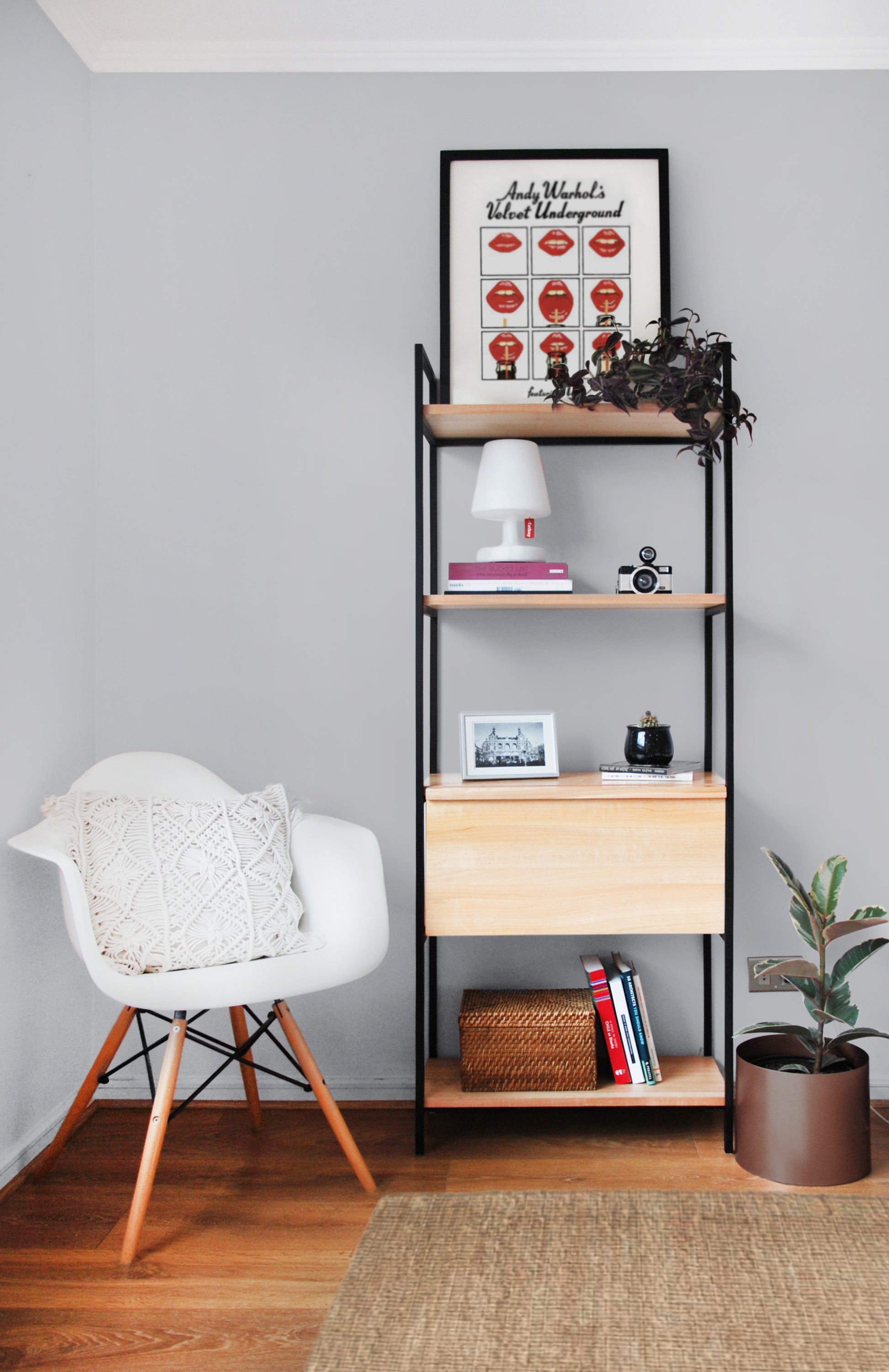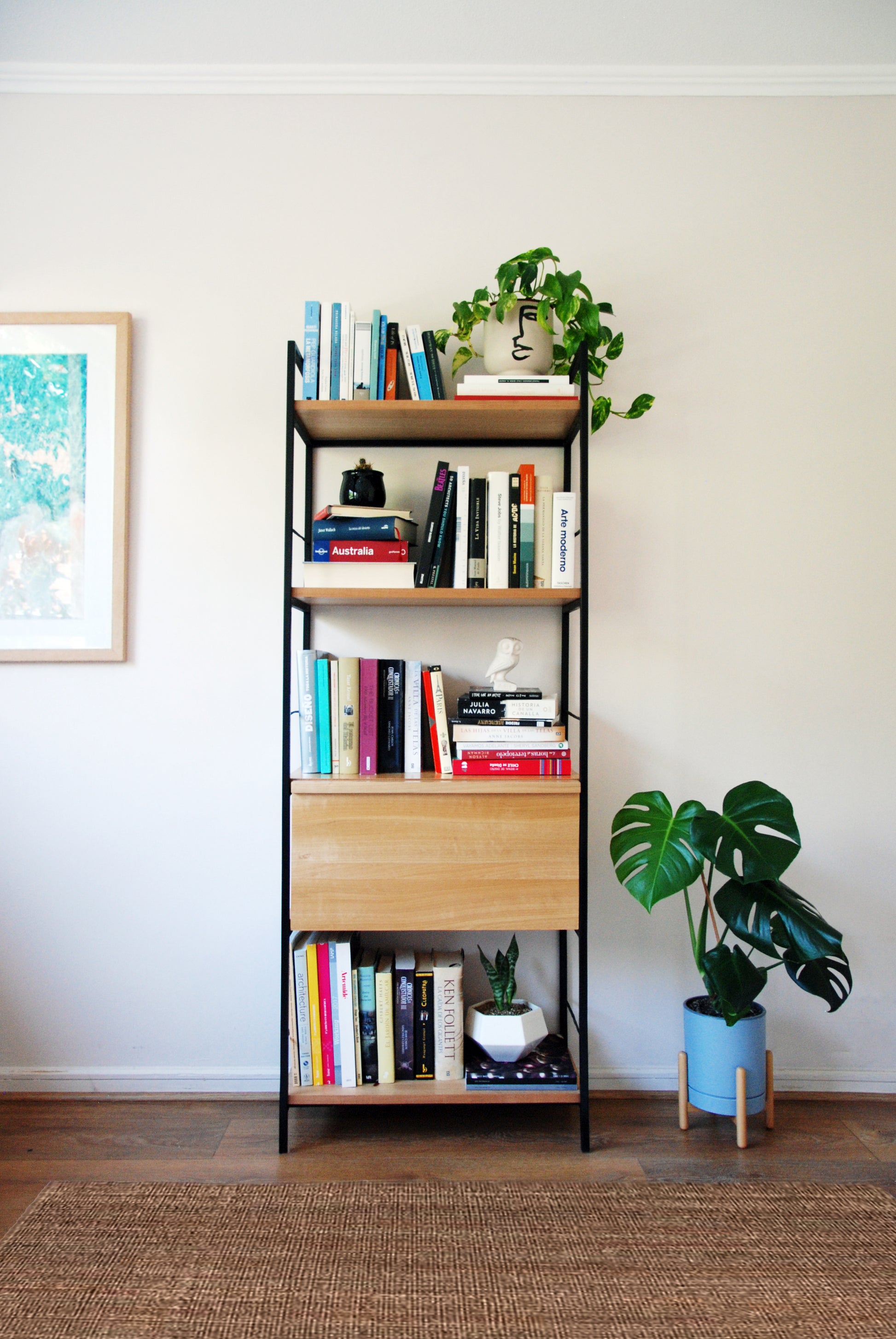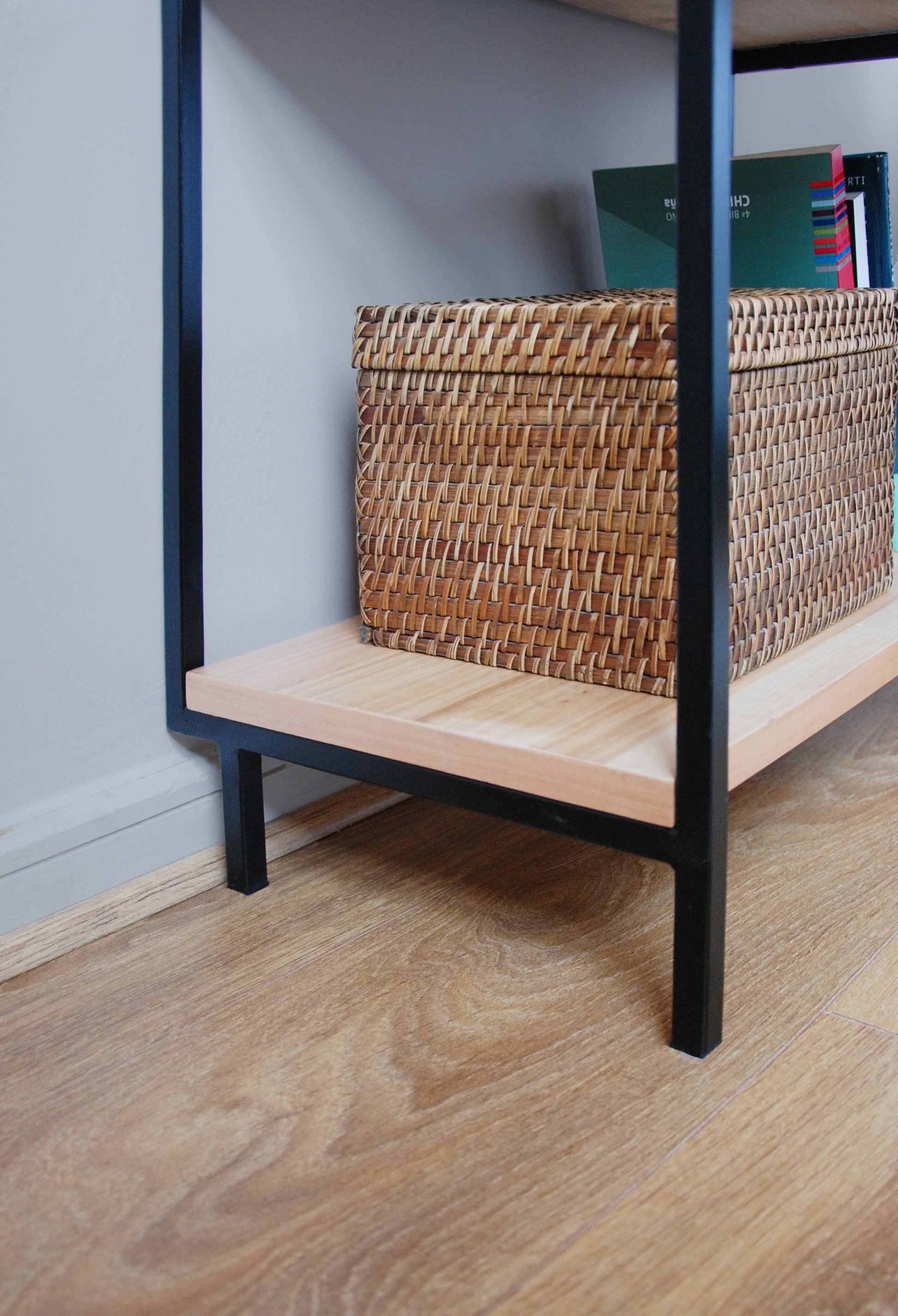 Repisas y cajón en placa enchapada en Encina natural con acabado PU satinado.
